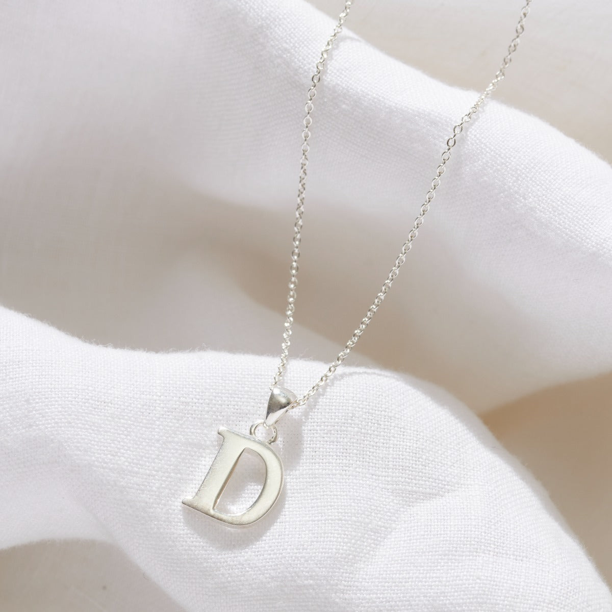 This gorgeous initial necklace is made from Sterling Silver in our Brighton workshop. Our jewellers suspend your chosen serif-style letter from one of our classic trace chains. Due to it's classic design, we think this necklace is perfect to wear either on it's own or layered with other styles. For an extra touch of luxe we can also plate this necklace in either 18ct Yellow Gold or 18ct Rose Gold.