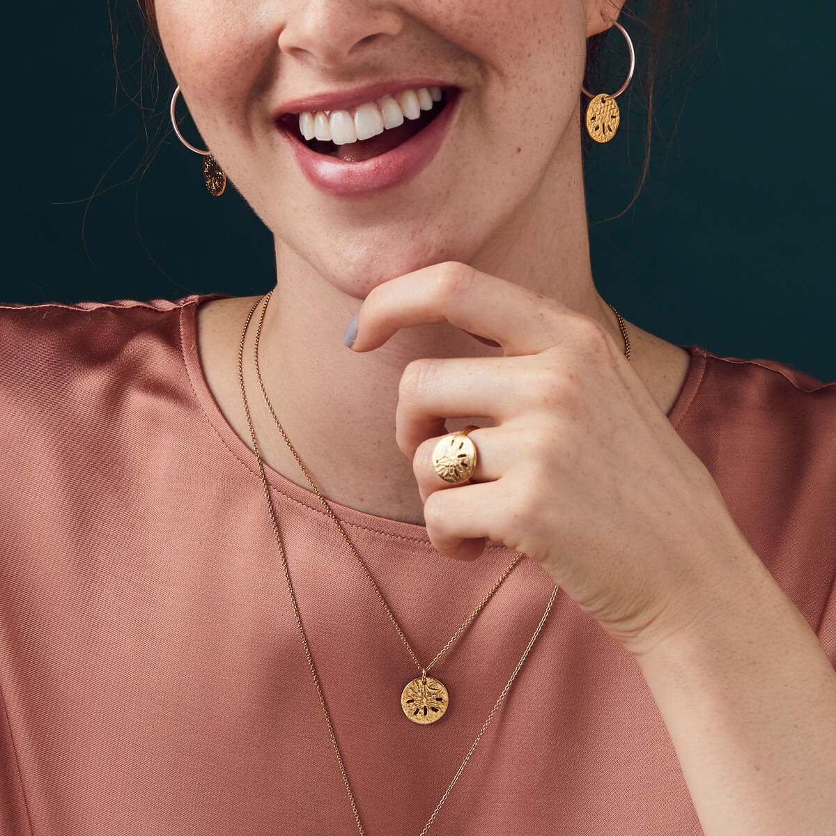 - Experiment with layers: Try strings of different lengths to see how multiple necklaces sit together and create layered styles.